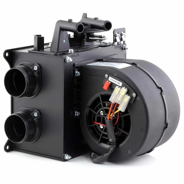 Värmaren är utrustad med en 3-stegs centrifugalfläkt av High Power-typ på 235cfm. De fyra luftutgångarna (Ø51 mm) möjliggör flexibel installation och effektiv fördelning av varm luft i kupén.