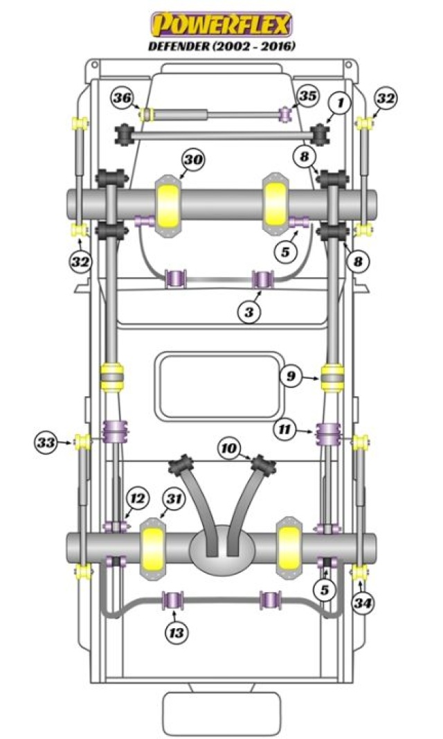 Den vanliga Powerflex-modellen är den lila och är en av de populäraste bussningarna på marknaden. Dessa bussningar är mycket bättre än original, både livslängd och väghållningsmässigt sett. Trots detta så behålls komforten väldigt bra i bussningarna.