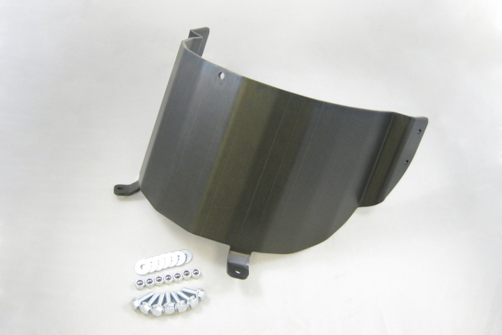 Skyddet monteras över växellådstunnel mot torpedväggen.
